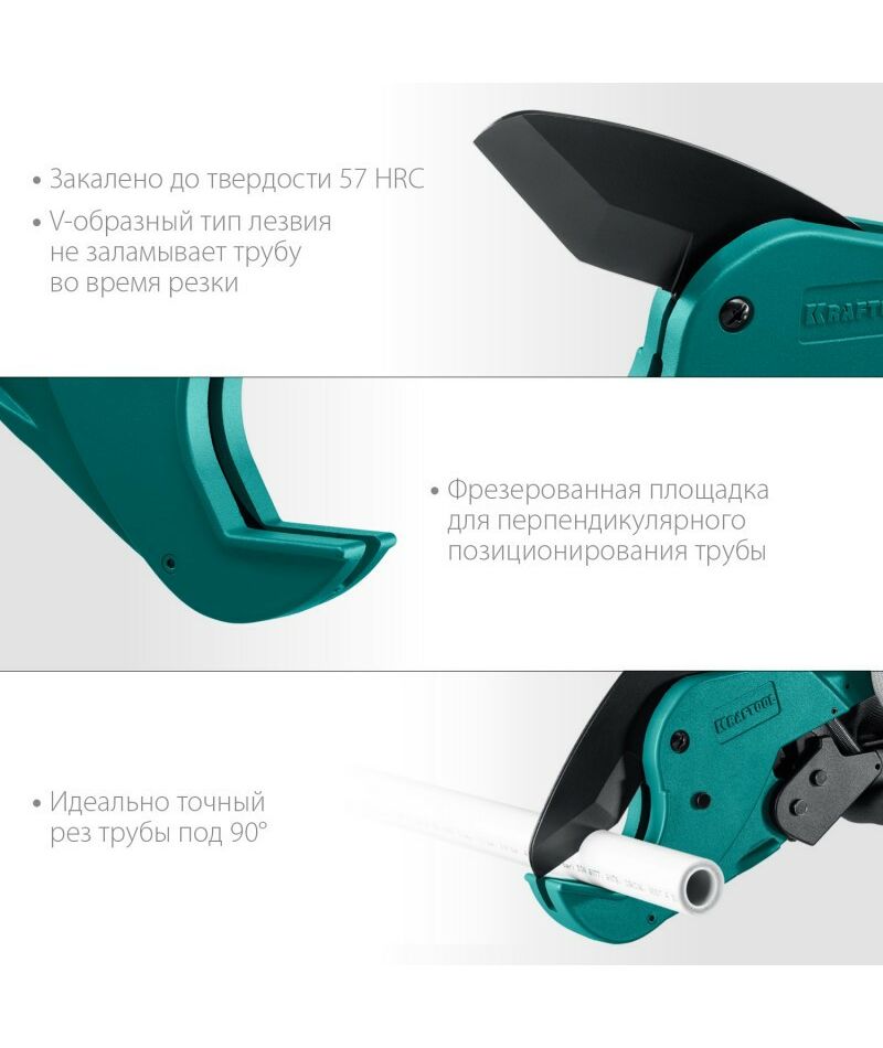 - Особенность №1: лезвие c V-образным острием предотвращает растрескивание труб из хрупкого пластика