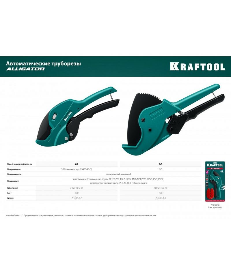 Автоматический труборез по металлопластиковым и пластиковым трубам KRAFTOOL Alligator-63 до 63 мм [23408-63]