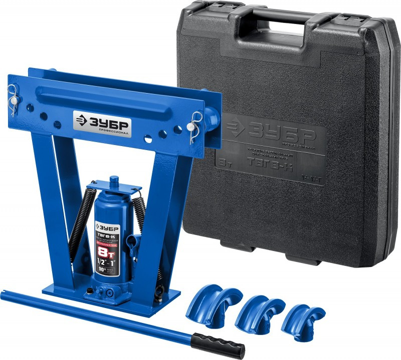 Трубогиб гидравлический вертикальный ручной Зубр Профессионал ТВГ-8-K 1/2-1", 8т, в кейсе [43078-08-K_z01]