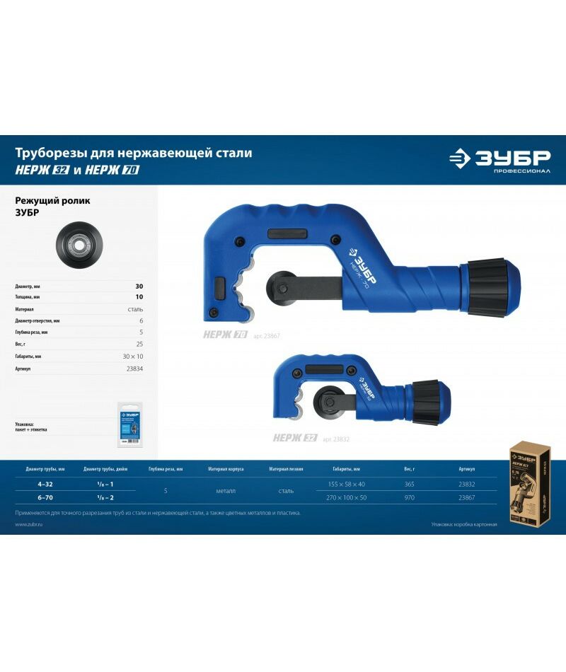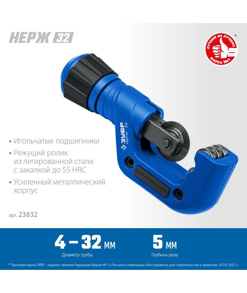 Труборез для нержавеющей стали Зубр Профессионал Нерж-32 4 - 32 мм, на подшипниках [23832]