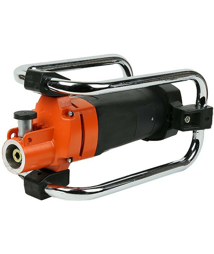 - Прост в использовании, требует минимум внимания и обслуживания, а сам маятник не требует смазки. Низкие обороты двигателя и вала позволяют уменьшить нагрузку на оператора и оборудование. Вибратор обрабатывает до 23 кубометров бетона в час.