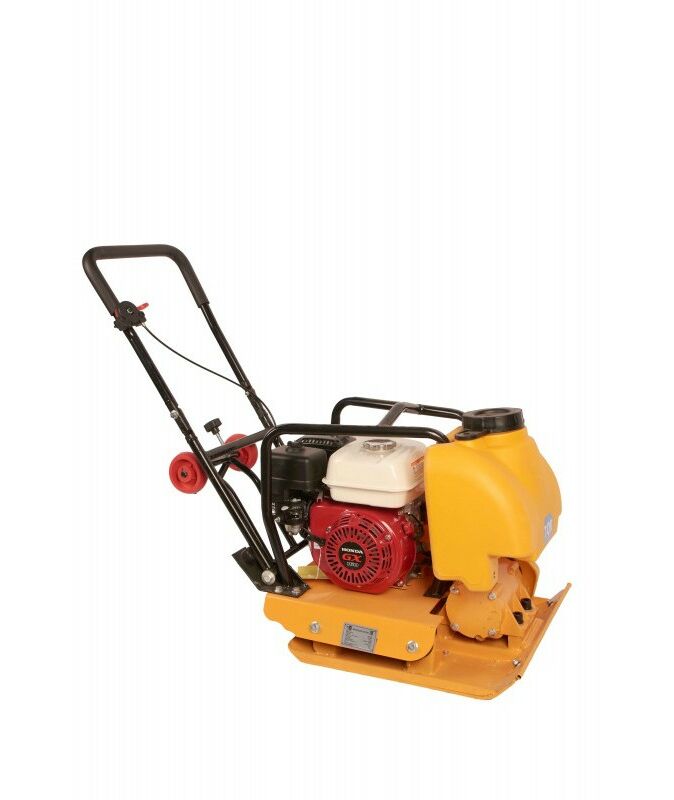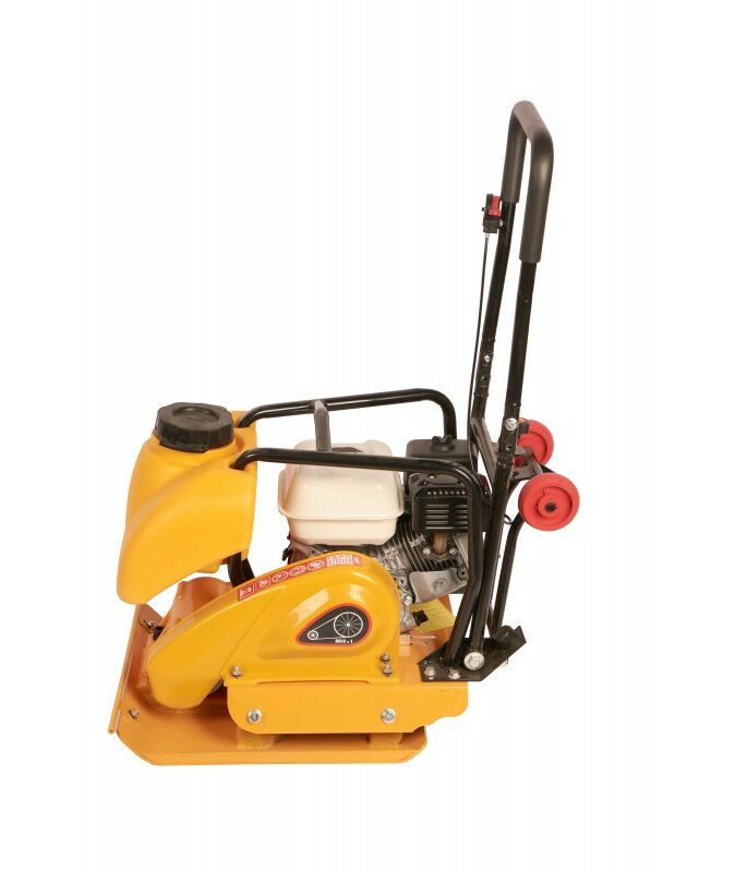 - Виброплиты бензиновые. Популярны, ведь у них высокая мощность и они бюджетнее дизельных аналогов. Могут работать как в мороз, так и в жару. В отличие от электрических моделей, свободно передвигаются по площадке. При всех плюсах, у них внушительный вес и уровень шума.