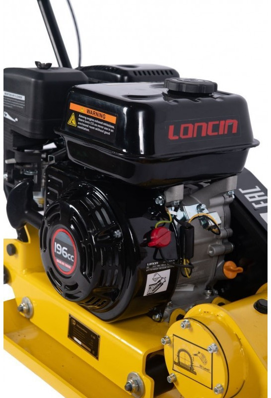 Виброплита TOR C-60 представлена в двух модификациях с бензиновыми двигателями: Loncin (4,8 кВт / 6,5 л.с) и Honda (4,0 кВт / 5,5 л.с). Ее легкий вес 60 кг, сила удара 10,5 кН, частота колебаний 4900 кол/мин позволяют достичь глубину уплотнения до 280 мм. Большая площадь плиты 550x370 мм сокращает время работы.