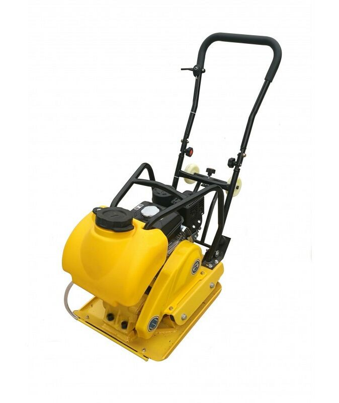 - Виброплиты бензиновые. Популярны, ведь у них высокая мощность и они бюджетнее дизельных аналогов. Могут работать как в мороз, так и в жару. В отличие от электрических моделей, свободно передвигаются по площадке. При всех плюсах, у них внушительный вес и уровень шума.
