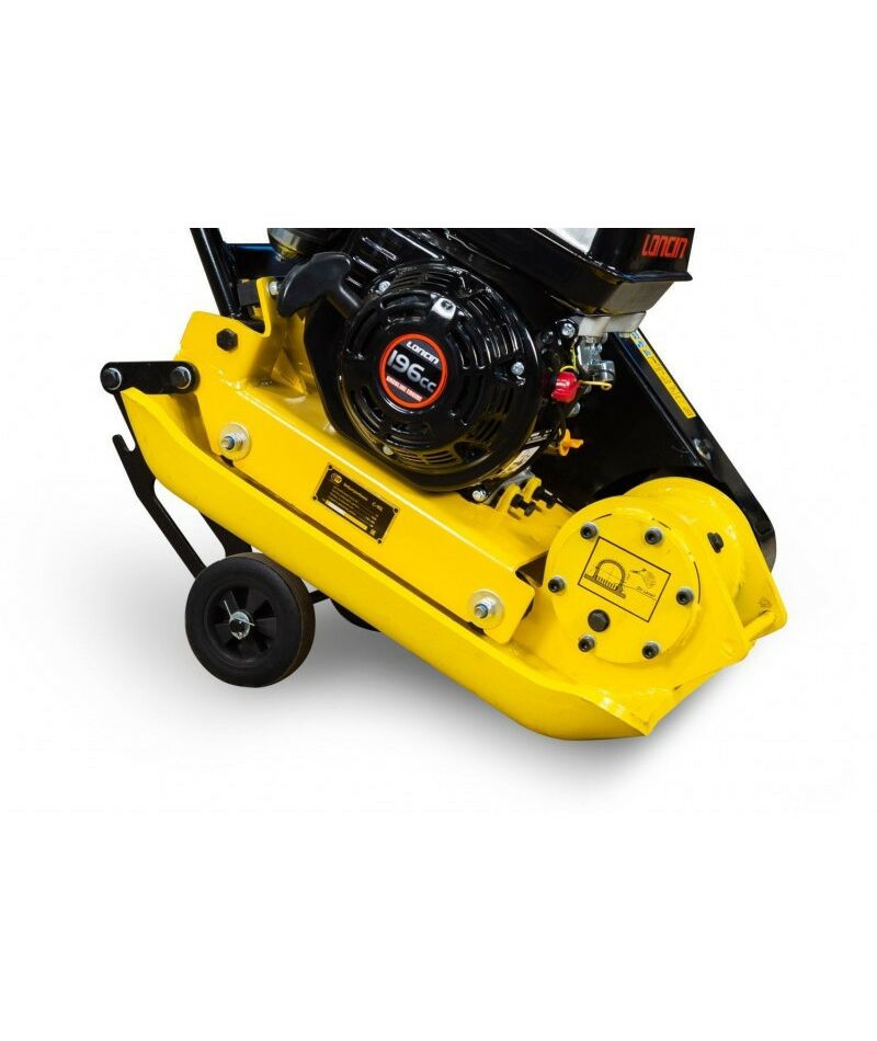 - Виброплиты бензиновые. Популярны, ведь у них высокая мощность и они бюджетнее дизельных аналогов. Могут работать как в мороз, так и в жару. В отличие от электрических моделей, свободно передвигаются по площадке. При всех плюсах, у них внушительный вес и уровень шума.