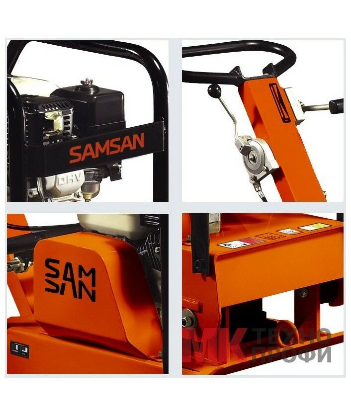 Виброплита реверсивная Samsan RP321 73X37см, двигатель Honda GX 160, 4-тактный, одноцилиндровый, 5.5 л/с, частота 4000 виб./мин, центробежная сила 30,5 кН, глубина уплотнения 50 см