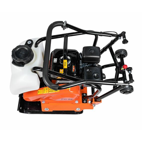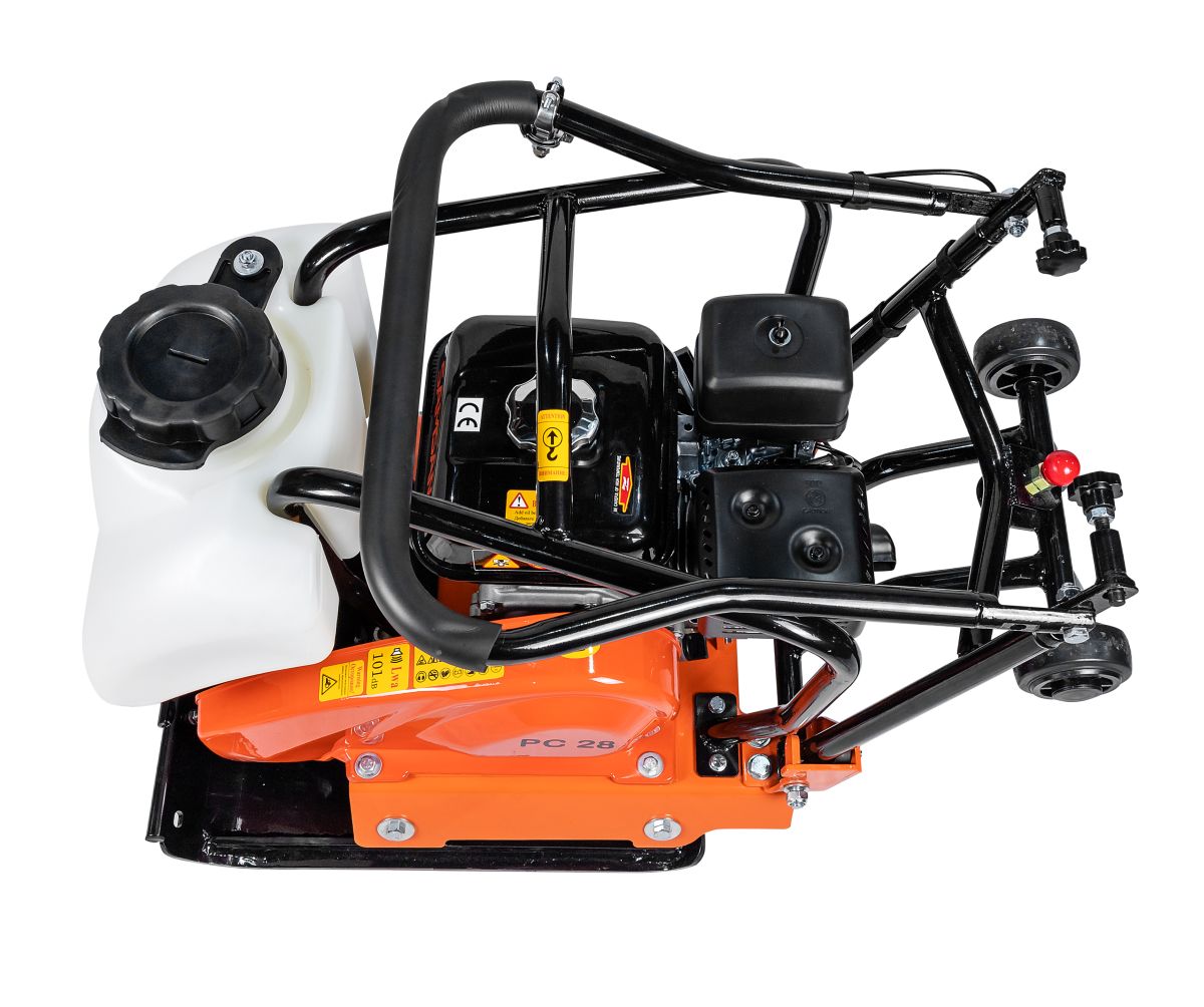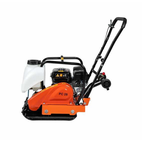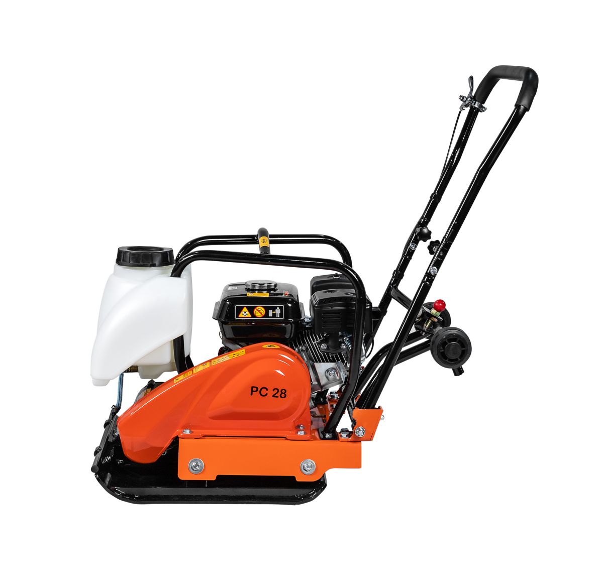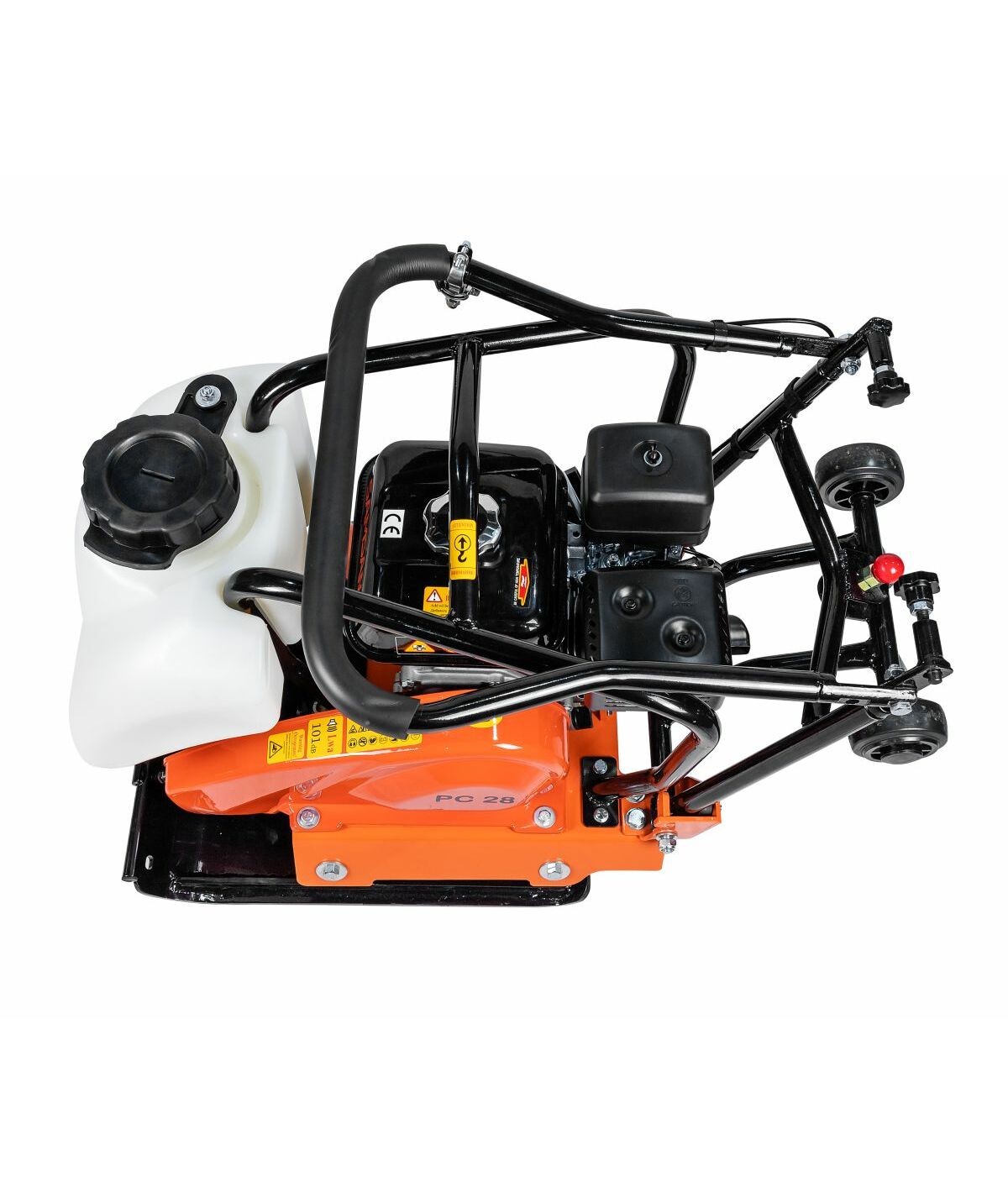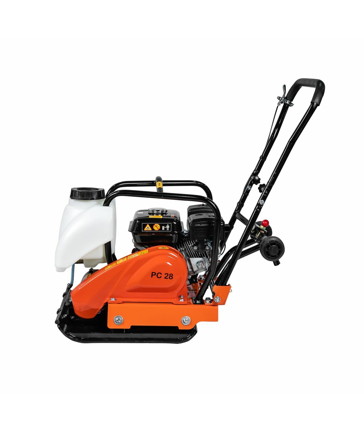 ОПИСАНИЕ Виброплита SAMSAN PC28 предназначена для уплотнения песка, гравия и смешанных грунтов. Отличается мобильностью и подходит для работы в узких траншеях, вдоль фундаментов и стен. Имеет защитный кожух от песка и грязи, а открытая подошва способствует ее самоочищению. Благодаря специальным соединениям, понижается вибрация рукоятки. Для удобства транспортировки имеются встроенные колеса, а ручка складывается.