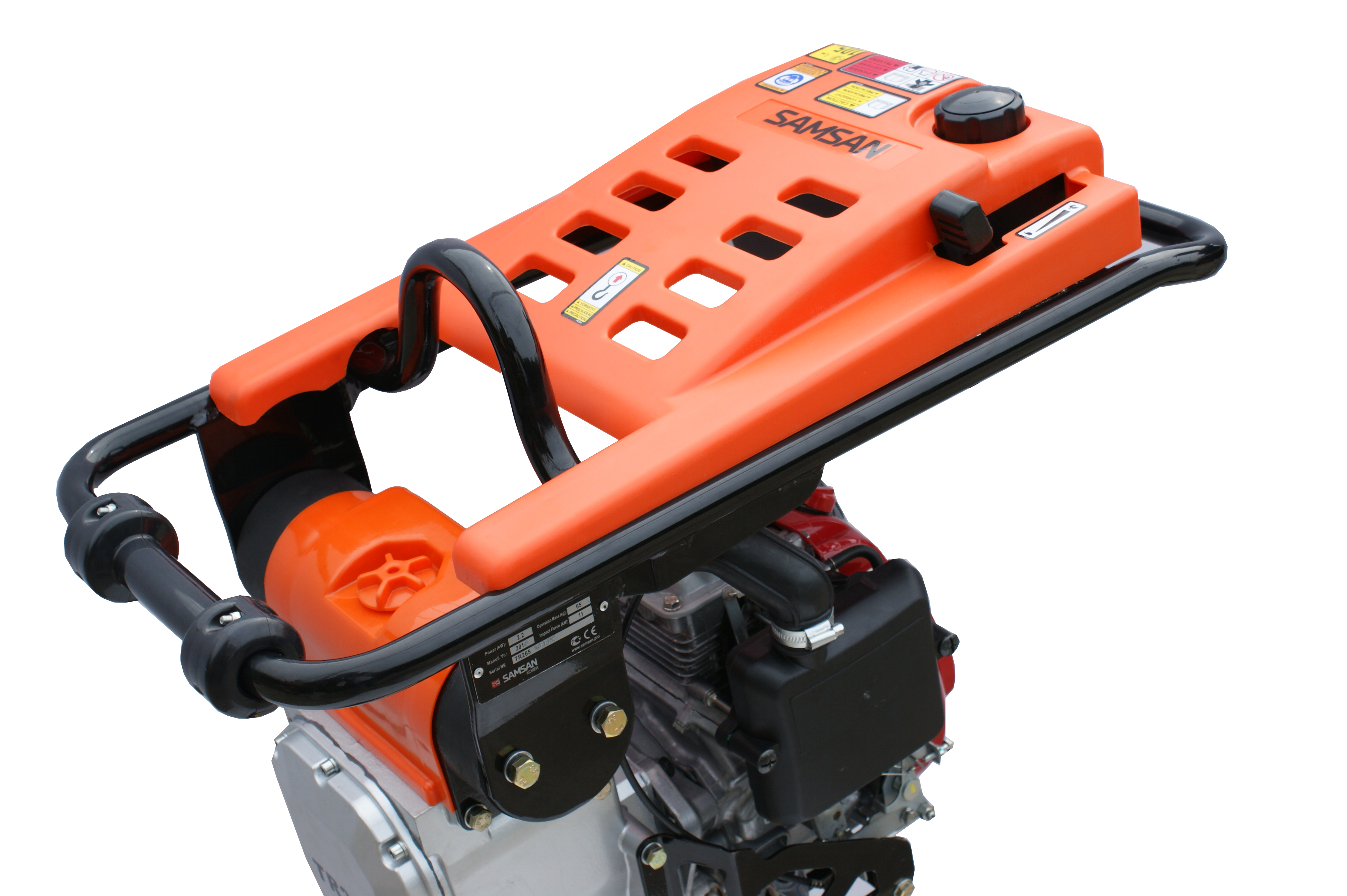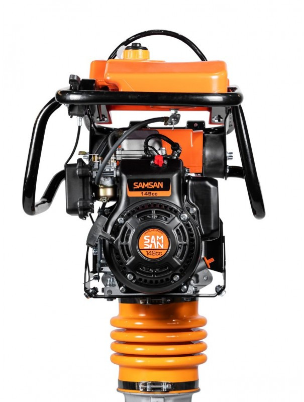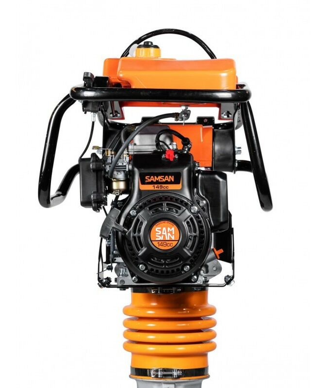 - Принцип действия схож с виброплитой, но вибротрамбовка SAMSAN обеспечивает большую эффективность трамбовки, благодаря меньшей площади соприкосновения с основанием.