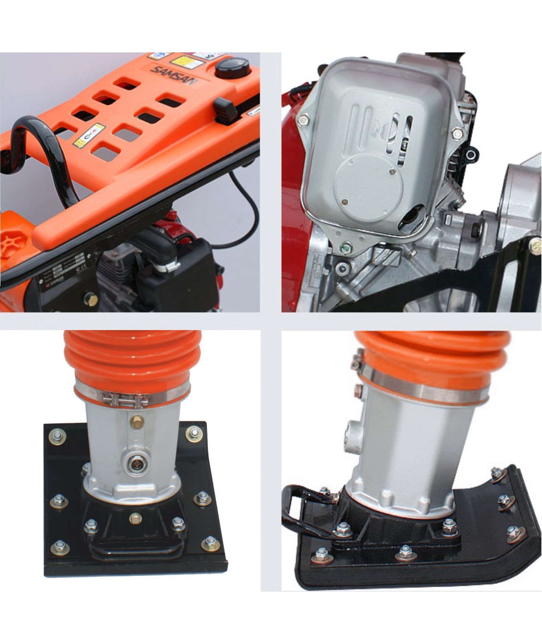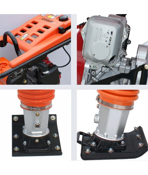 - Вибротрамбовки Samsan позволяют работать с разными типами поверхностей, обеспечивая высокую эффективность и производительность при уплотнении грунта и сыпучих материалов.