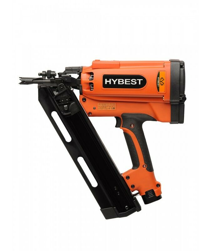 Газовый нейлер (гвоздезабивной пистолет) для каркасных работ предназначен для автономной работы с гвоздями на бумажной кассете длиной от 50 мм до 90 мм. Для данной модели гвоздезабивателя не требуется компрессор или подключение к электросети.