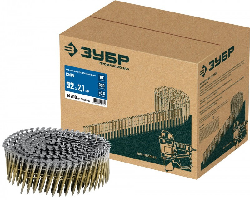 Барабанные гвозди рифленые Зубр CNW 32 х 2.1 мм 14700 шт [305382-32]