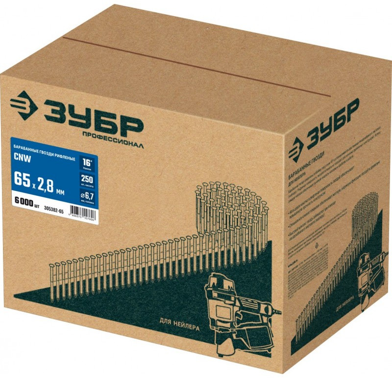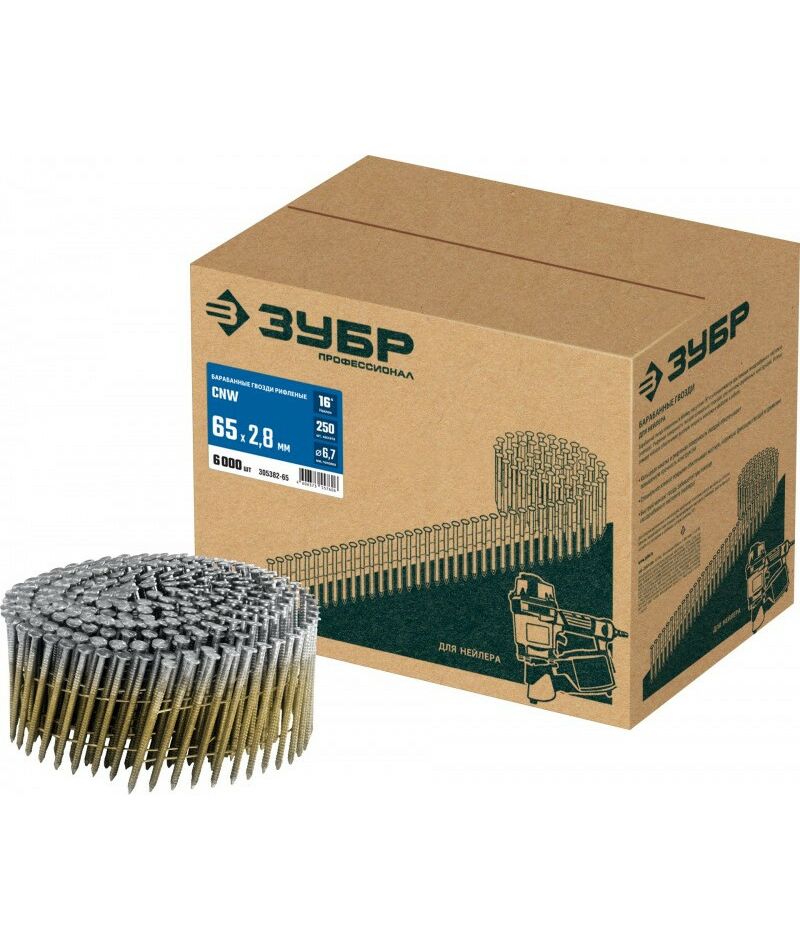 Барабанные гвозди рифленые Зубр CNW 65 х 2.8 мм 6000 шт [305382-65]
