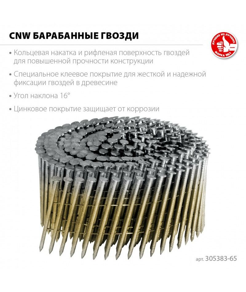 Барабанные гвозди рифленые оцинкованные Зубр CNW 65 х 2.8 мм 6000 шт [305383-65]