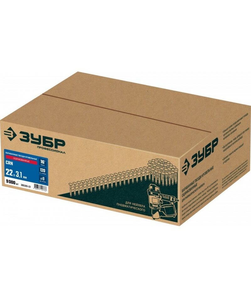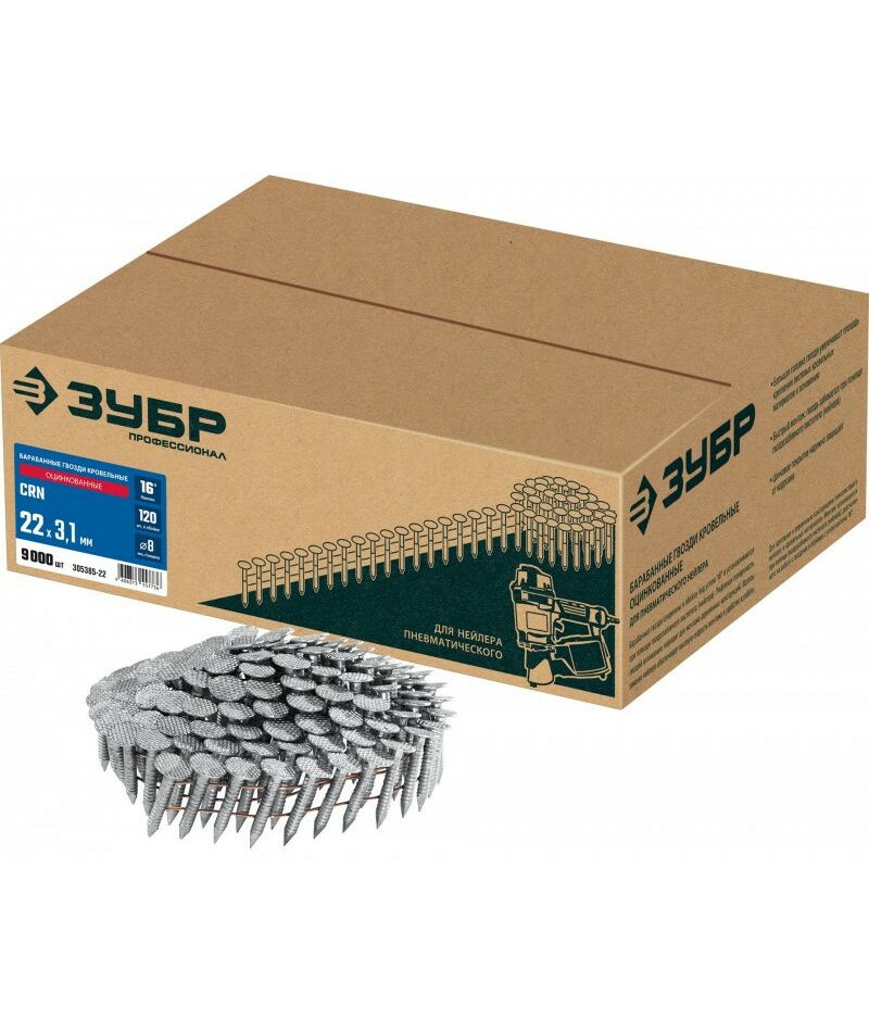 Барабанные гвозди кровельные оцинкованные Зубр CRN 22 х 3.1 мм 9000 шт [305385-22]