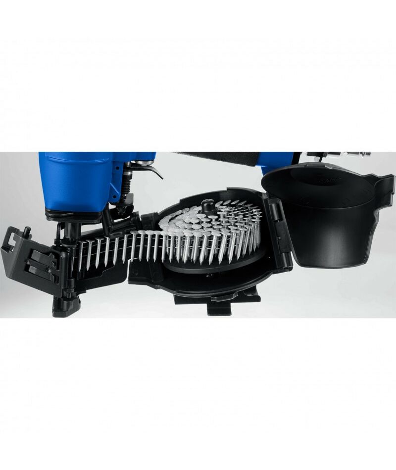 Барабанные гвозди соединены в обойму под углом 16° и забиваются при помощи гвоздезабивного пистолета (нейлера). Большая головка гвоздей оптимально подходит для монтажа листовых кровельных материалов. Использование нейлера обеспечивает высокую скорость монтажа и удобство в работе.