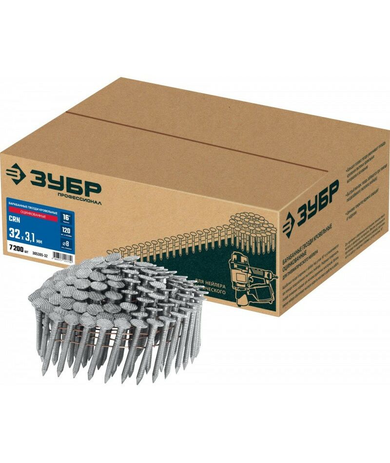 Барабанные гвозди кровельные оцинкованные Зубр CRN 32 х 3.1 мм 7200 шт [305385-32]