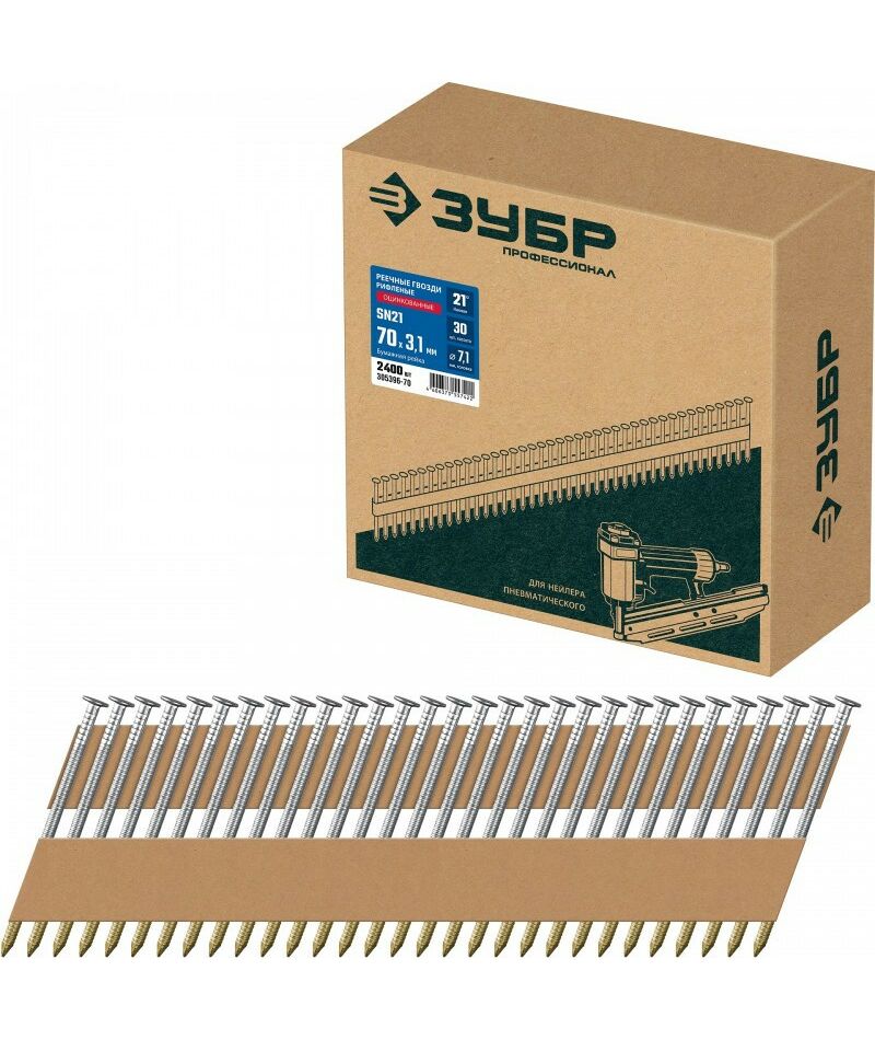 Реечные гвозди рифленые оцинкованные Зубр SN21 70 х 3.1 мм 2400 шт [305396-70]