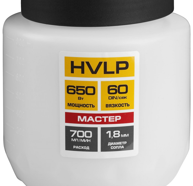 - Расходная емкость объемом 800 мл позволяет длительно работать на одной заправке и не нагружает руки оператора излишним весом