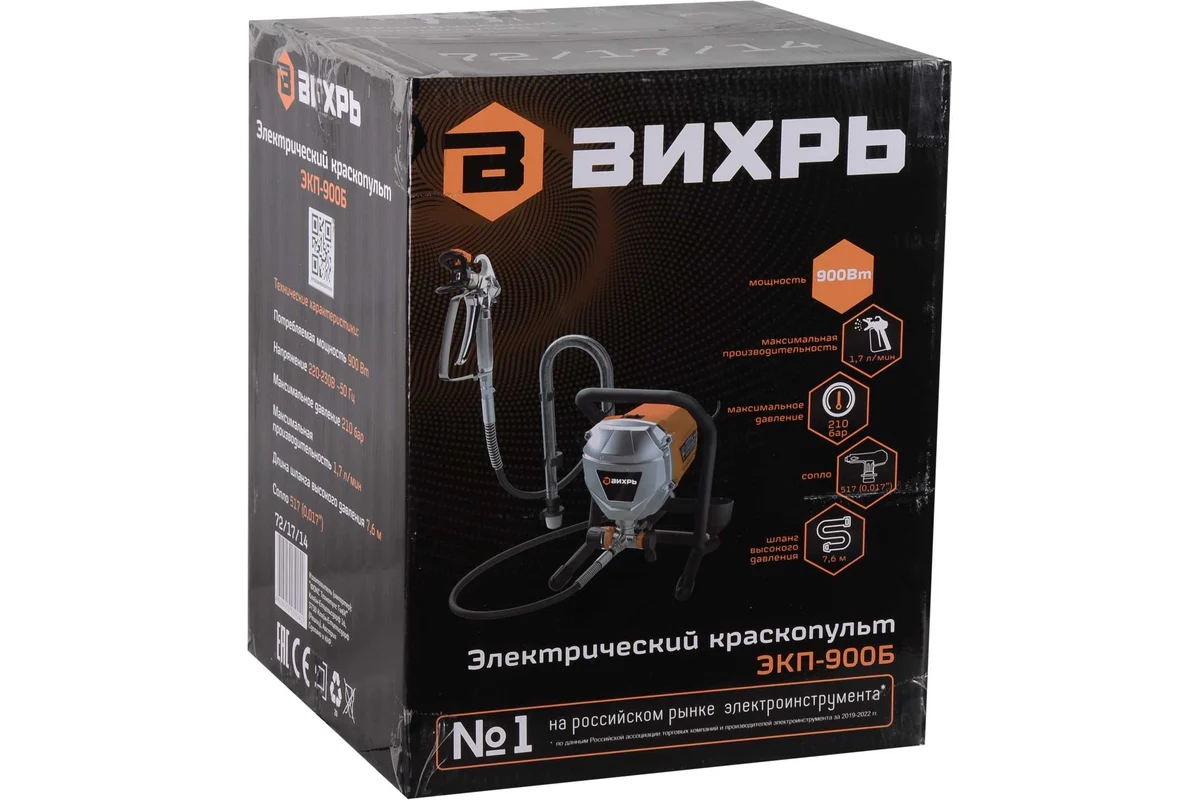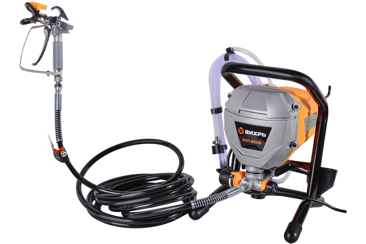 Электрический безвоздушный окрасочный аппарат ЭКП-900Б Вихрь — это надежное и производительное оборудование, предназначенное для профессионального и бытового применения. Он подходит для обработки внутренних и внешних поверхностей, включая стены, потолки, фасады, заборы и другие конструкции.