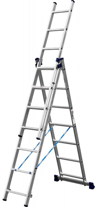 Трехсекционная лестница СИБИН 38833-07 7 ступеней, со стабилизатором, алюминиевая