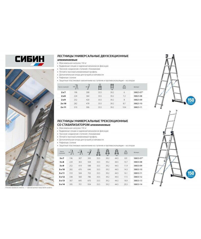 - Лестницы СИБИН предназначена для выполнения различных хозяйственных работ. Может использоваться как стремянка и как приставная раздвижная лестница. Надежная конструкция в сочетании с высококачественными материалами обеспечивают легкость и удобство в эксплуатации.