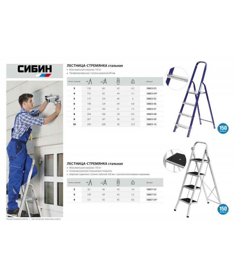 Стальная стремянка СИБИН 38803-06 6 ступеней, 124 см
