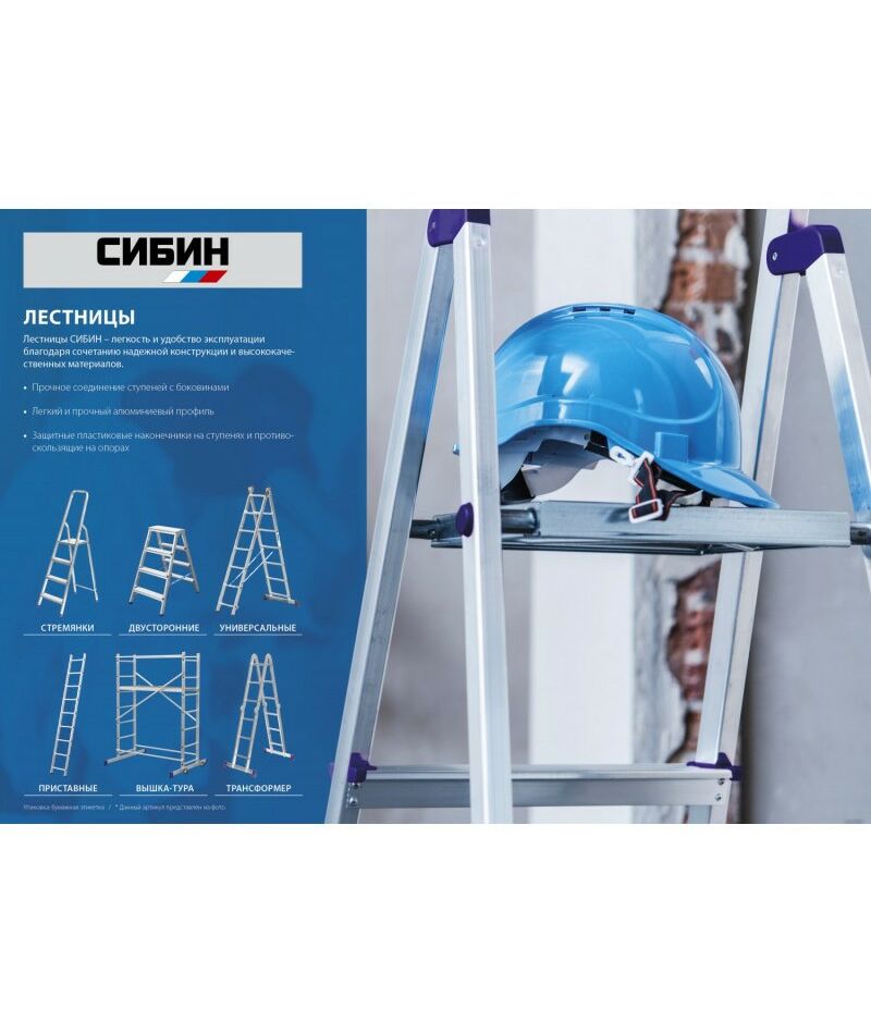 Лестницы СИБИН предназначена для выполнения различных хозяйственных работ. Может использоваться как стремянка и как приставная раздвижная лестница. Надежная конструкция в сочетании с высококачественными материалами обеспечивают легкость и удобство в эксплуатации.