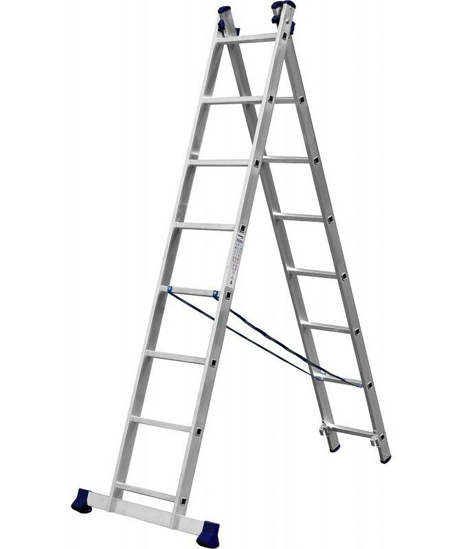 Двухсекционная лестница СИБИН 38823-08 8 ступеней, со стабилизатором, алюминиевая