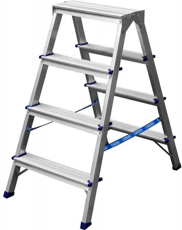 Двухсторонняя стремянка СИБИН 38825-04 алюминиевая, 4 ступени