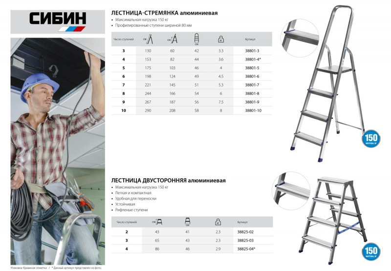 - Лестницы СИБИН – легкость и удобство в эксплуатации благодаря сочетанию надежной конструкции и высококачественных материалов.
