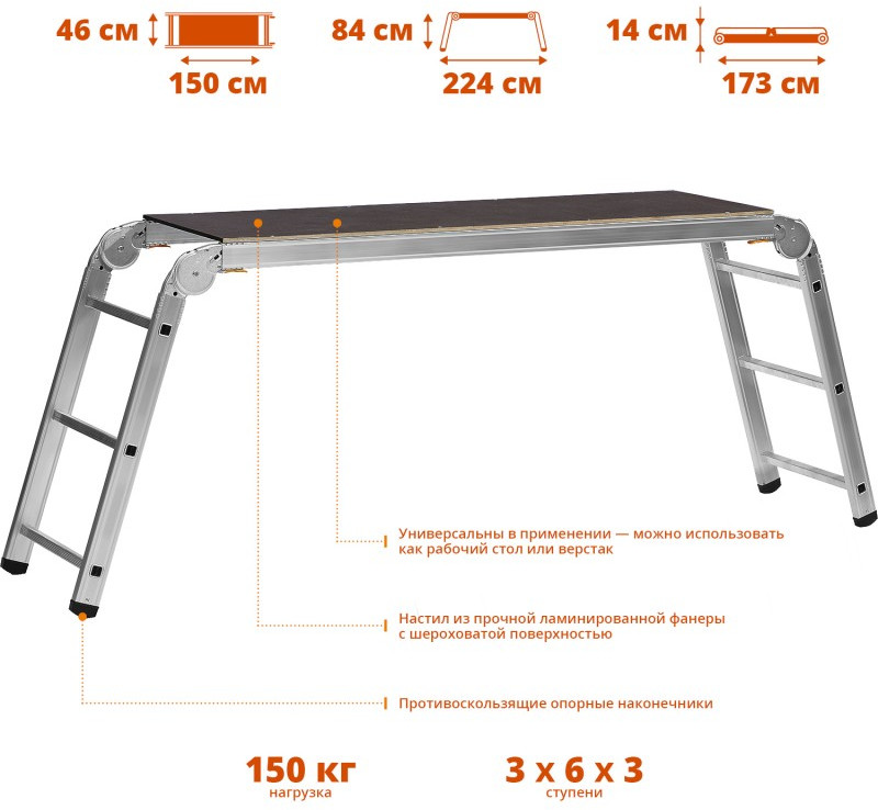 - Материал: ступени и боковины: алюминий