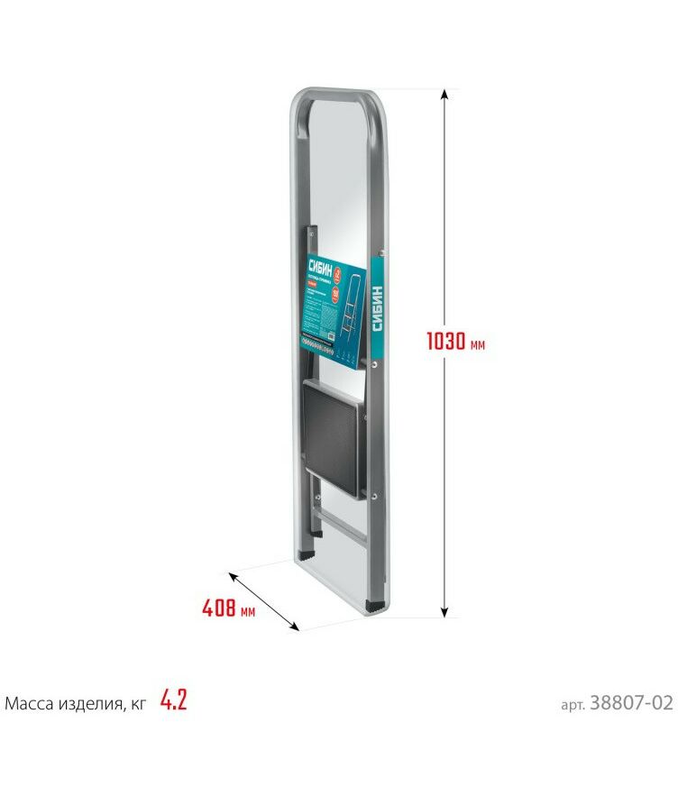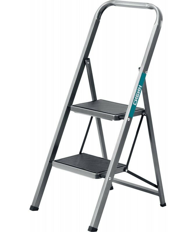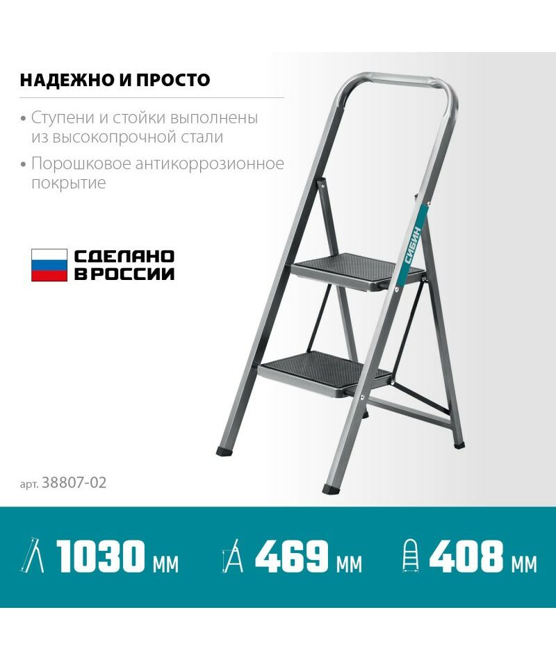 Стремянка СИБИН 38807-02 2 ступени, 46 см, c широкими обрезиненными ступенями, стальная