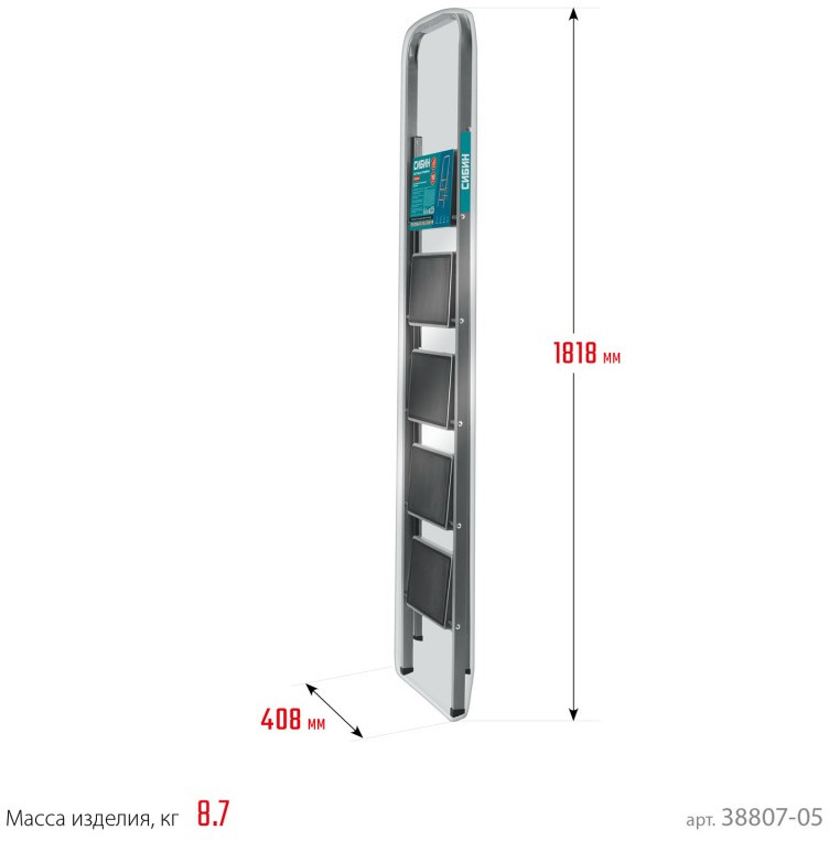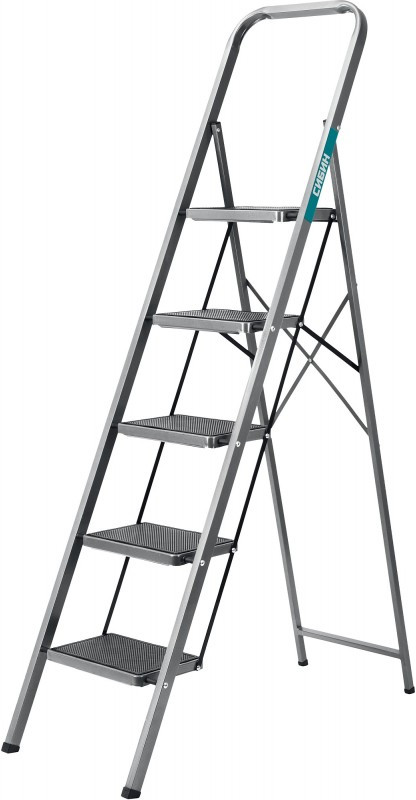 Стремянка стальная СИБИН 38807-05 c широкими обрезиненными ступенями, 5 ступени, 118 см [38807-05]