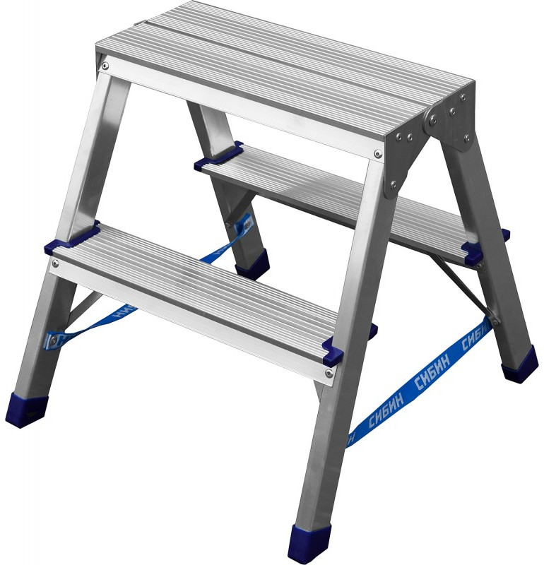 Двухсторонняя стремянка СИБИН 38825-02 алюминиевая, 2 ступени