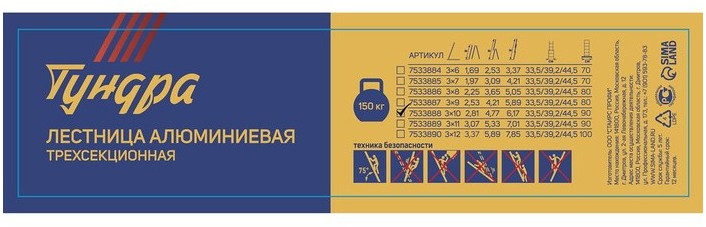 Лестница TUNDRA 10 ступеней трехсекционная, алюминиевая