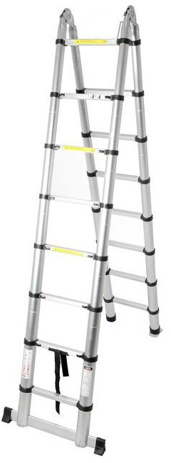 Стремянка-лестница телескопическая TUNDRA 2.5 х 2.5 м раскладная, алюминиевая
