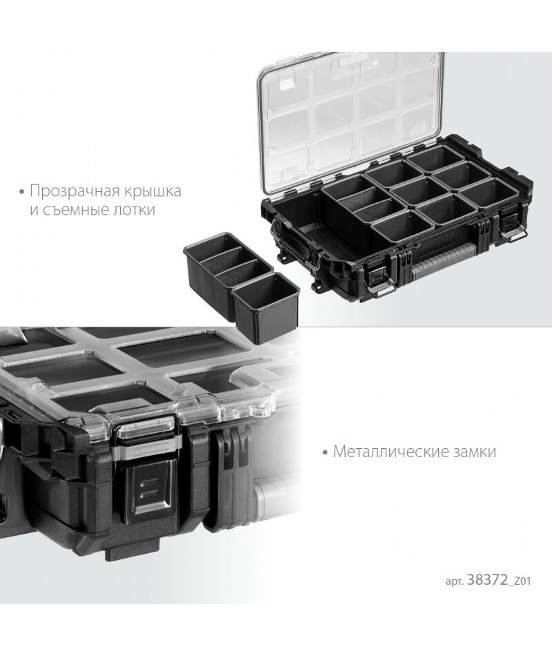 - Надежная конструкция ящика с использованием металлических замков. Наличие уплотнителя для защиты инструмента от пыли и влаги
