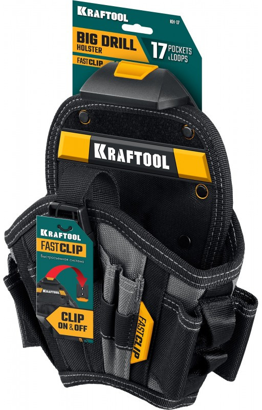 Кобура для шуруповерта KRAFTOOL KH-17 большая, с быстросъёмным креплением, FastClip, 17 карманов и петель [38768]