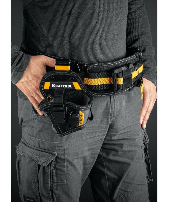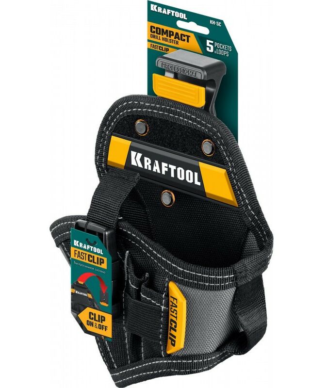 Кобура для компактного шуруповерта KRAFTOOL KH-5C с быстросъёмным креплением FastClip, 5 карманов и петель [38770]