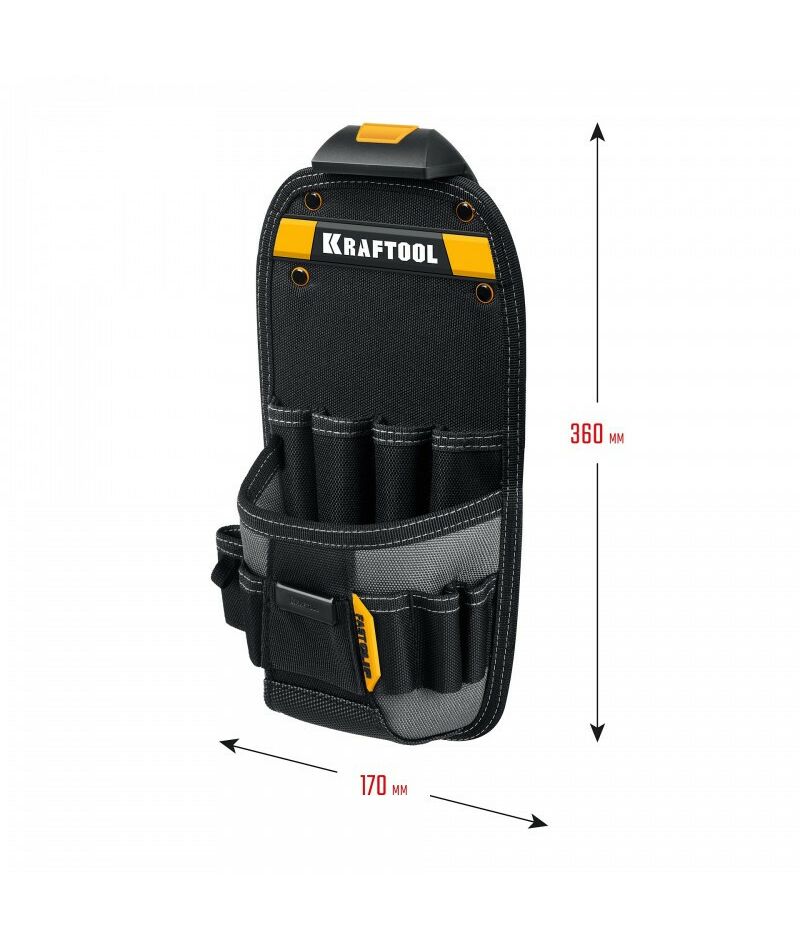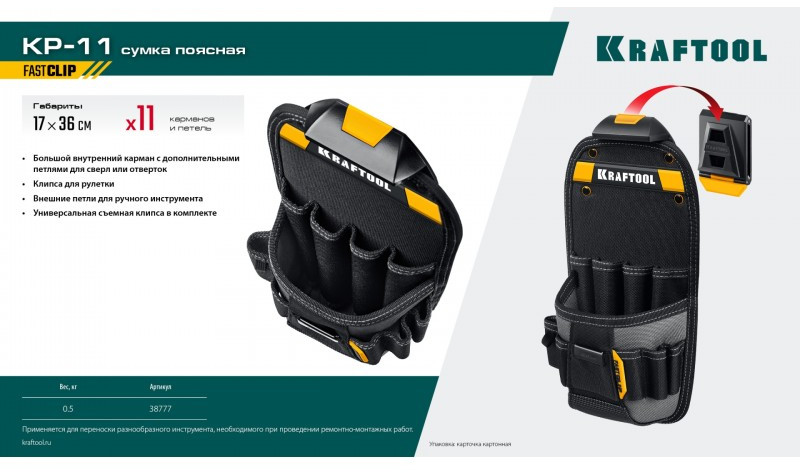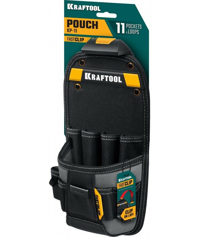 Поясная сумка KRAFTOOL KP-11 с быстросъёмным креплением FastClip, 11 карманов и петель, 170 х 360 мм [38777]