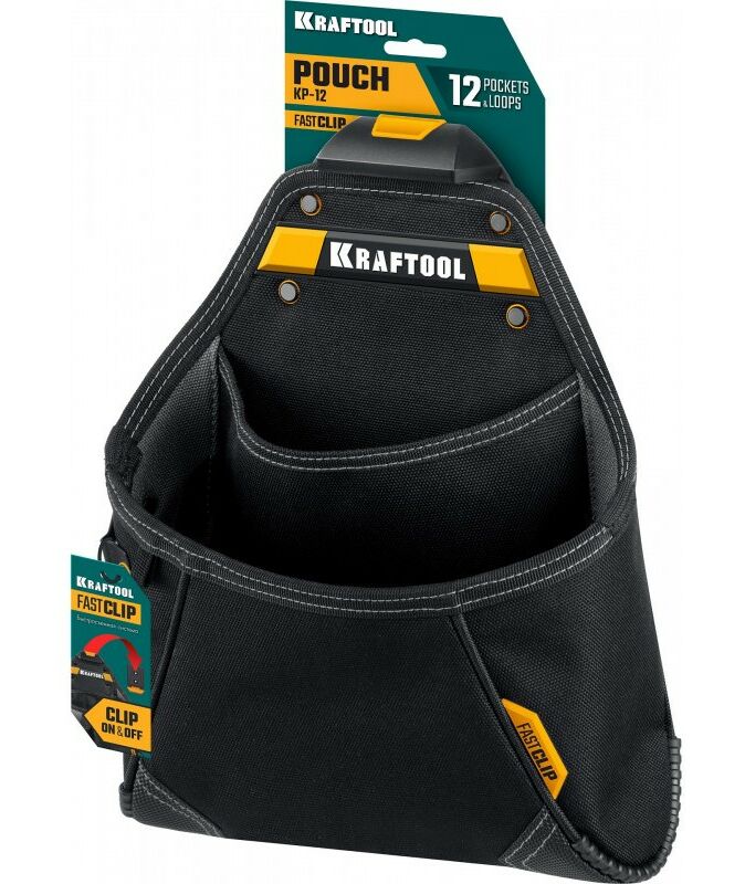 Поясная сумка KRAFTOOL KP-12 с быстросъёмным креплением FastClip, 12 карманов и петель, 260 х 340 мм [38774]