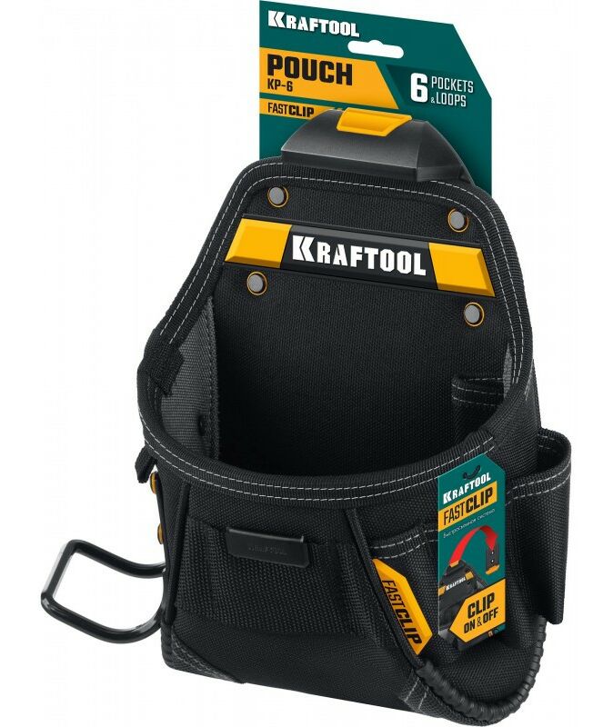 Поясная сумка KRAFTOOL KP-6 с быстросъёмным креплением FastClip, 6 карманов и петель, 240 х 250 мм [38775]