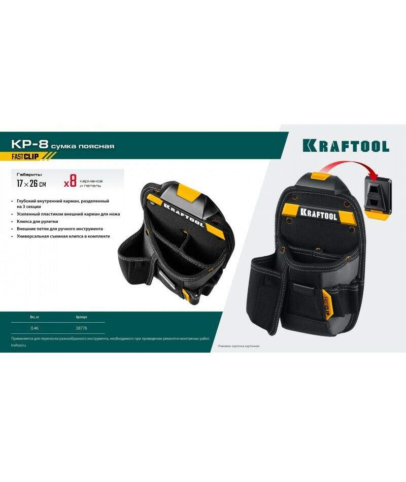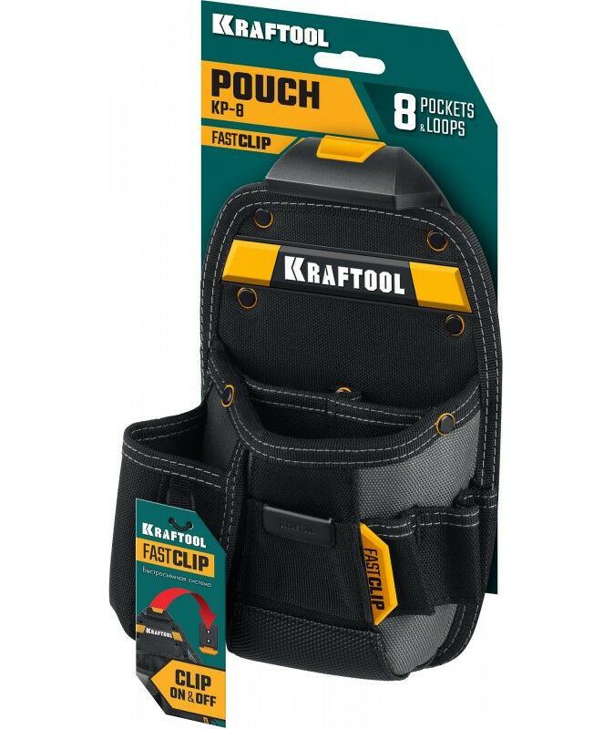 Поясная сумка KRAFTOOL KP-8 с быстросъёмным креплением FastClip, 8 карманов и петель, 170 х 260 мм [38776]