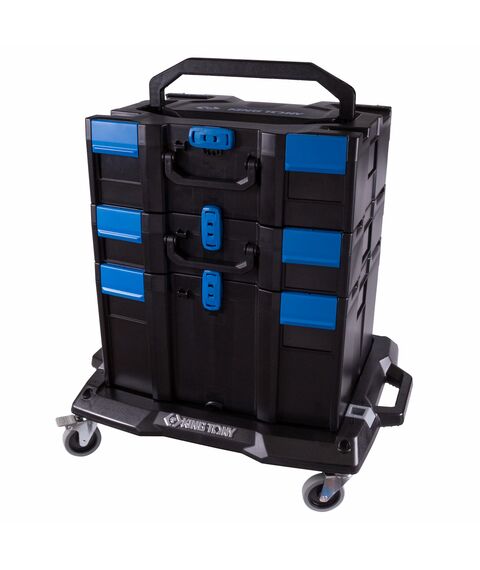 Подставка позволяет транспортировать модульную систему ящиков к рабочему месту. В конструкции предусмотрен крепеж для соединения с ящиком.