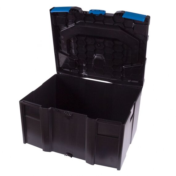 Ящик оснащен специальным вставным соединением, позволяющим наращивать кейсы в одну модульную систему и получать прочную устойчивую конструкцию.