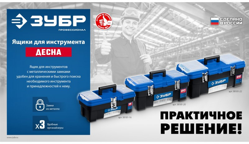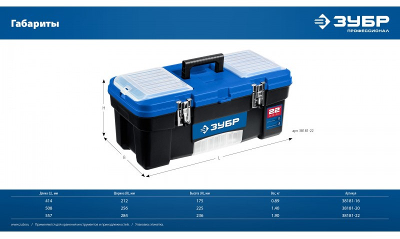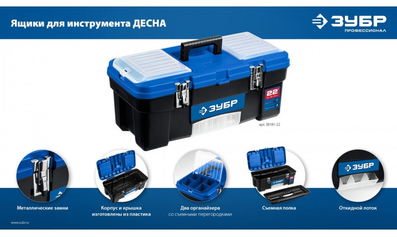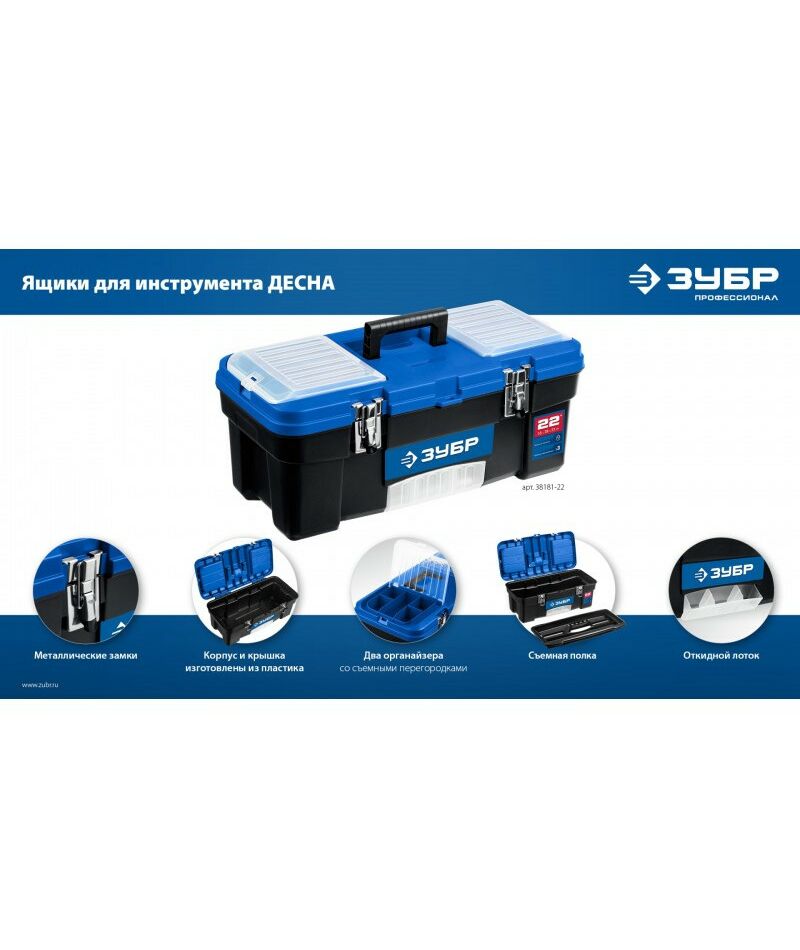 Пластиковый ящик для инструментов Зубр ДЕСНА-22 557 x 284 x 236 мм, 22" [38181-22]
