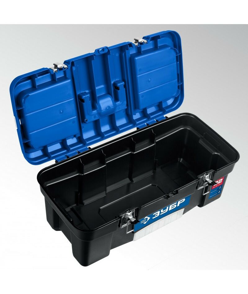 Ящик для инструментов с металлическими замками, рассчитанными на повышенные нагрузки.