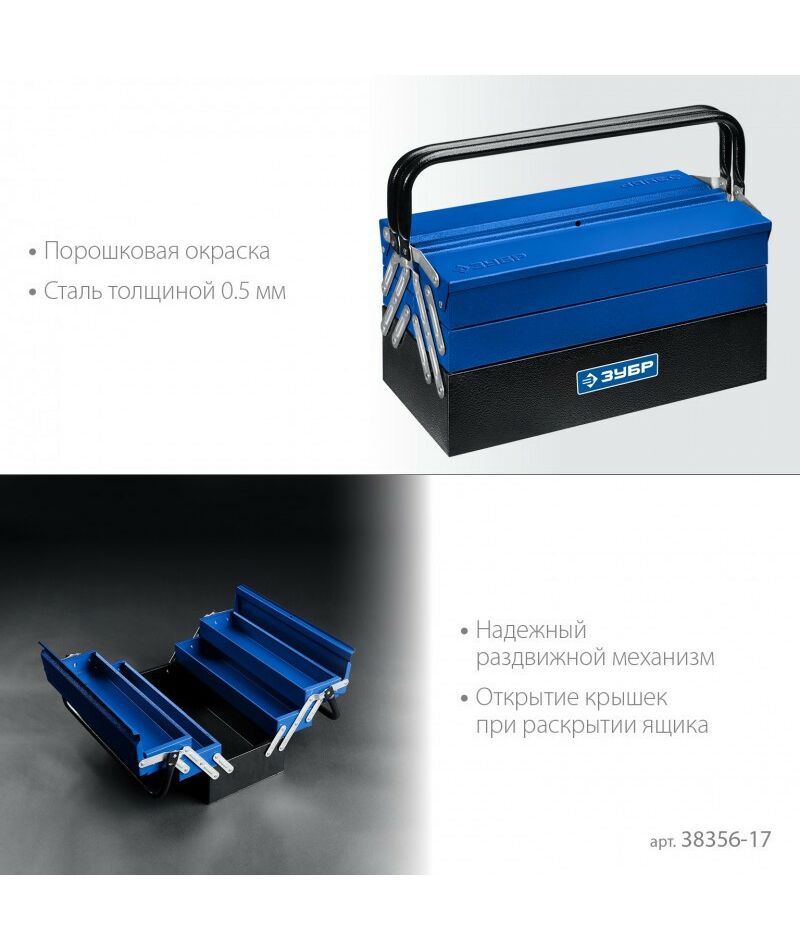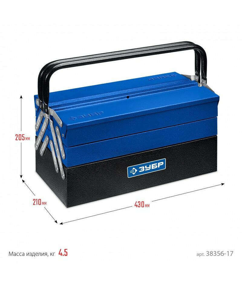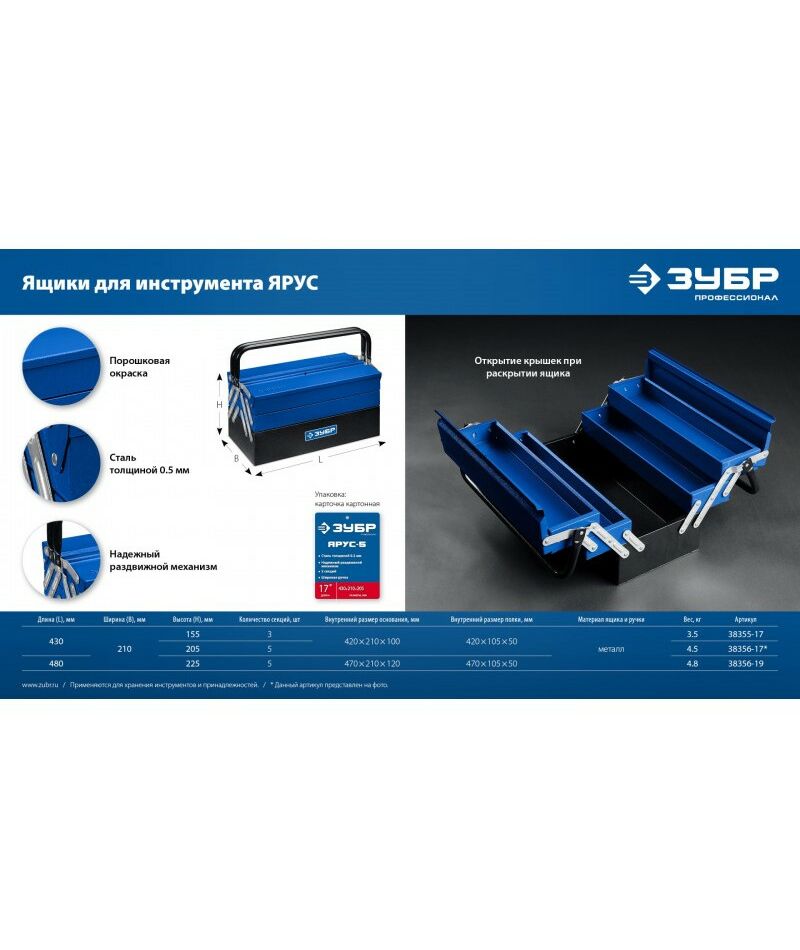 Металлический раздвижной ящик для инструментов Зубр ЯРУС-5/17 Профессионал, 430 х 210 х 205 мм, (17") 38356-17