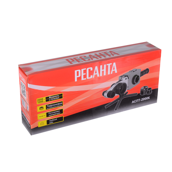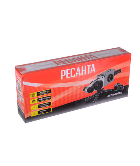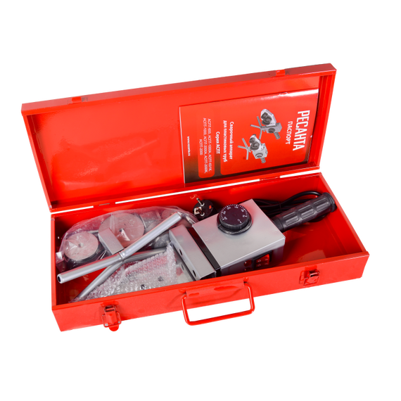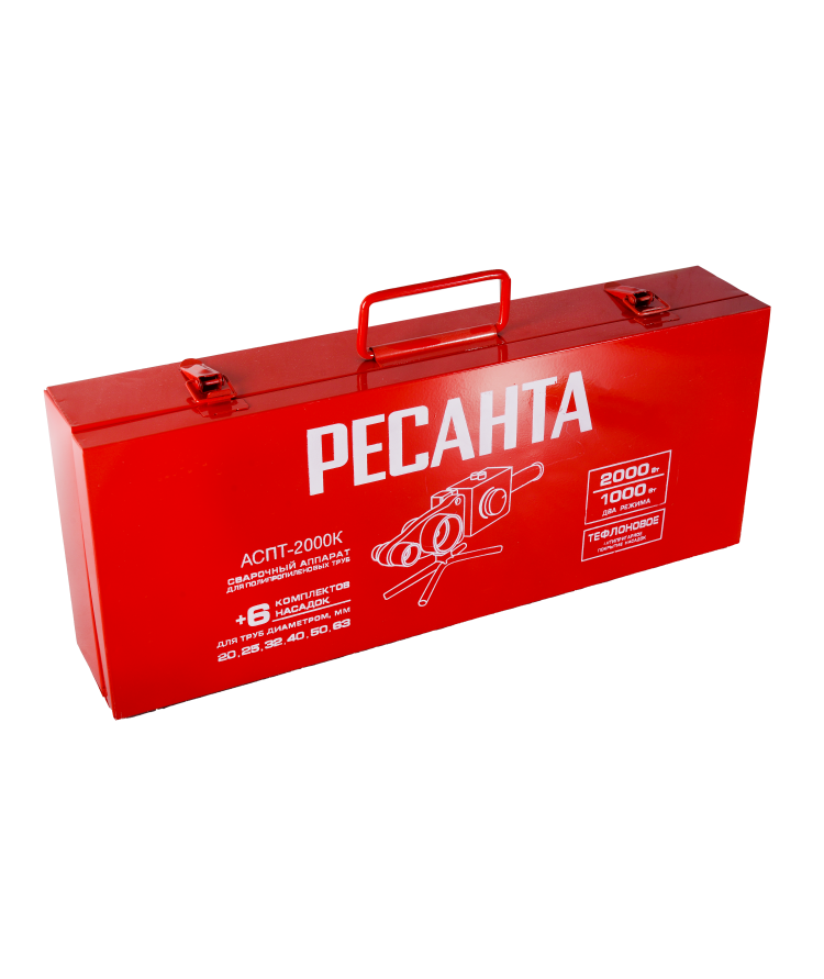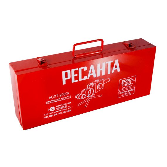 Аппарат для сварки ПВХ труб РЕСАНТА АСПТ-2000К 220 В, 2000 Вт, до 300°, насадки - 20-63 мм (6 шт.), кейс