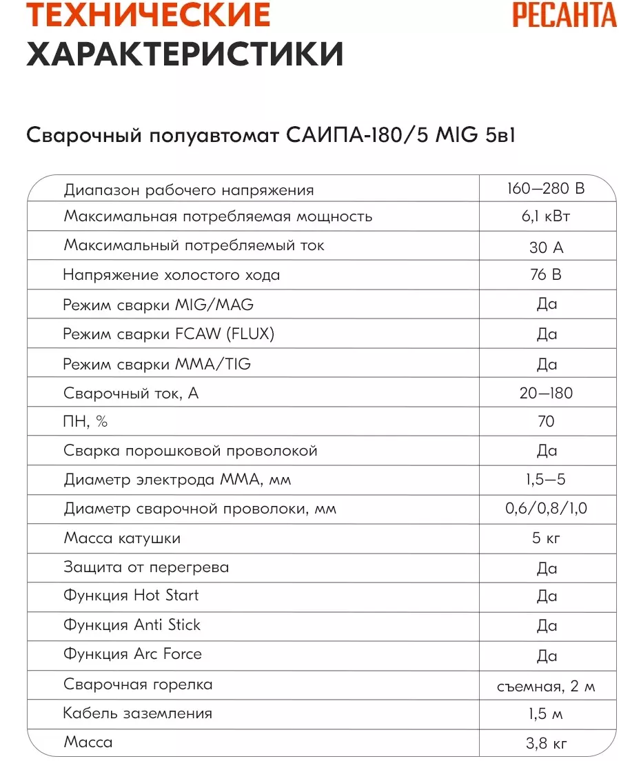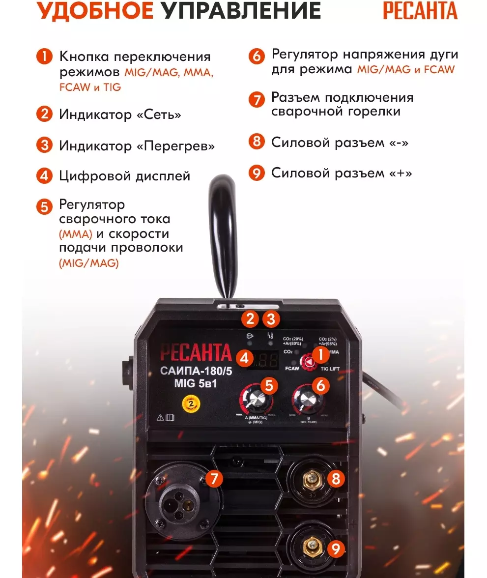 Сварочный полуавтомат 5в1 РЕСАНТА САИПА-180/5 MIG
